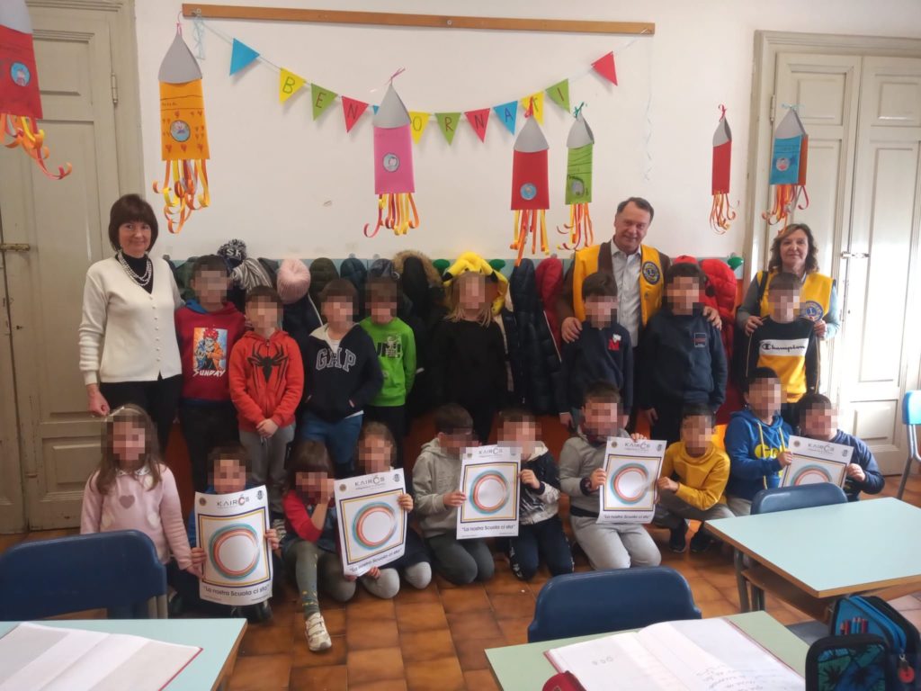 La consegna del materiale all’Istituto Comprensivo B avvenuta nel mese di febbraio scorso è stata seguita da una piacevole visita nelle Classi aderenti da parte del Presidente Mario Mariani e della socia referente Kairos Maria Eugenia Moy che hanno constatato sul campo l’attività in classe con le insegnanti Daniela Marasà e Luisa Gaeta. Nell’occasione dell’incontro, il 7 marzo scorso, è stato presentato un video esplicativo del progetto per stimolare ulteriormente i bambini che hanno seguito sulla loro lavagna luminosa le immagini dimostrando entusiasmo e vivacità. La possibilità di avere in classe anche il mezzo interattivo consente di utilizzare pienamente i materiali del Progetto kairos che, oltre ai quaderni cartacei di lavoro, propone audio e video on line da integrare.