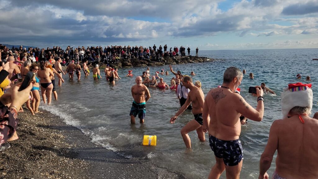 Il tradizionale tuffo di fine anno si è tenuto nello specchio acqueo antistante i Bagni Medusa e, come sempre, ha visto la partecipazione di “professionisti del cimento” provenienti da tutta la Liguria e da tutto il nord Italia. Tra di loro, in “rappresentanza” dell’amministrazione di Loano, anche il presidente del consiglio comunale Giovanni Battista Cepollina.
