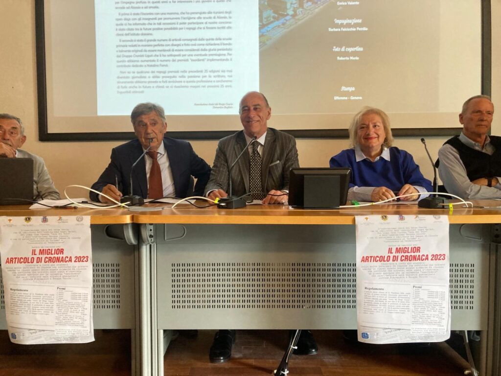 Alla Biblioteca “Renzo Deaglio” di Alassio ieri pomeriggio, giovedì 16 maggio, si è svolta la premiazione dei vincitori del concorso “Il miglior articolo di cronaca 2023”. L’iniziativa, giunta alla sua venticinquesima edizione, è stata organizzata dall’Associazione Amici del Borgo Coscia con il contributo dell’Associazione Bagni Marini, del Lions Club Alassio “Baia del Sole” e dell’Associazione Vecchia Alassio, e con il patrocinio e il contributo dell’Assessorato al Turismo e dell’Assessorato al Volontariato del Comune di Alassio.