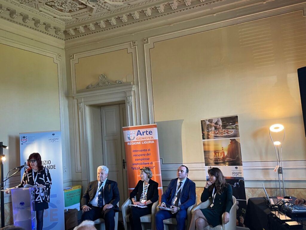 Carlomaria Balzola presidente provinciale Fipe ed Enrico Schiappapietra presidente Confcommercio di Savona di cui la Fipe fa parte, nella giornata di oggi, giovedì 16 maggio, hanno fatto qualcosa di veramente importante: hanno inaugurato le manifestazioni a Villa Zanelli, lo splendido edificio in stile Liberty e uno dei più significativi capolavori di questo genere in Italia, che dopo quasi mezzo secolo di decadenza e tre anni di intenso restauro solo da poche settimane è stato riaperto a visite nel week end e mai prima d’ora da quando è stato realizzato, cioé nel 1907, ci risulta abbia mai ospitato una manifestazione di questo genere.