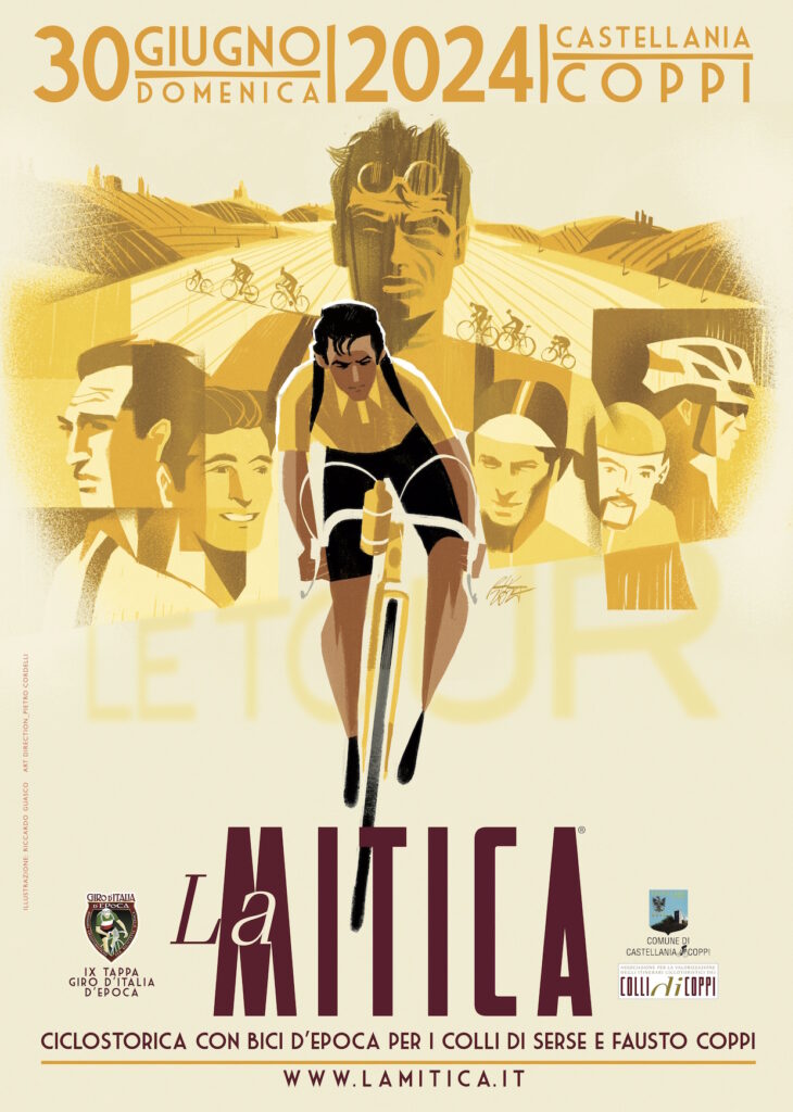Mentre Toscana, Emilia Romagna, Piemonte e il territorio dei Colli di Coppi stanno mettendo a punto gli ultimi dettagli per essere essere travolti dal colore giallo dell’evento più importante ed imponente della stagione ciclistica internazionale, la Grande Départ italiana del Tour de France ed il transito della terza tappa proprio da Tortona, anche LaMITICA, in programma a Castellania Coppi Domenica 30 Giugno, ha scelto di dedicare la 12a edizione della Ciclostorica con Bici d’Epoca per i Colli di Serse e Fausto Coppi -ormai classico appuntamento ciclovintage internazionale di fine Giugno e tappa del Giro d’Italia d’Epoca- alla Grande Départ italiana del Tour de France, con le sue mille sfumature di giallo che già caratterizzano l’immagine creata per l’edizione 2024 della ciclostorica dall’inconfondibile mano dell’artista alessandrino Riccardo Guasco.