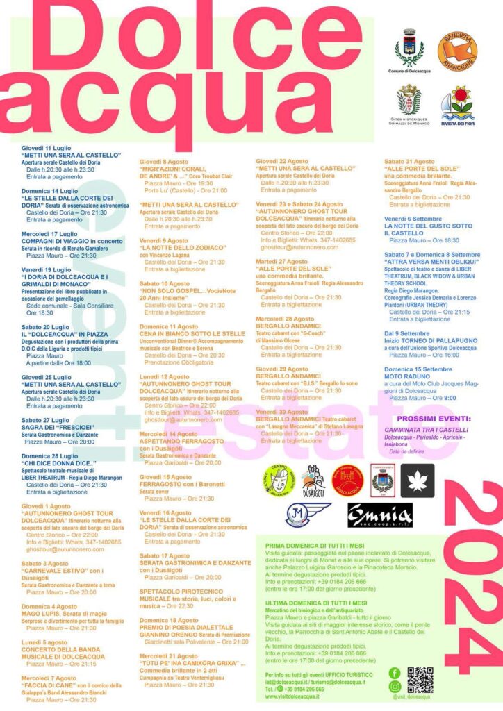 L’Amministrazione di Dolceacqua è lieta di comunicare gli eventi per la stagione estiva 2024.
