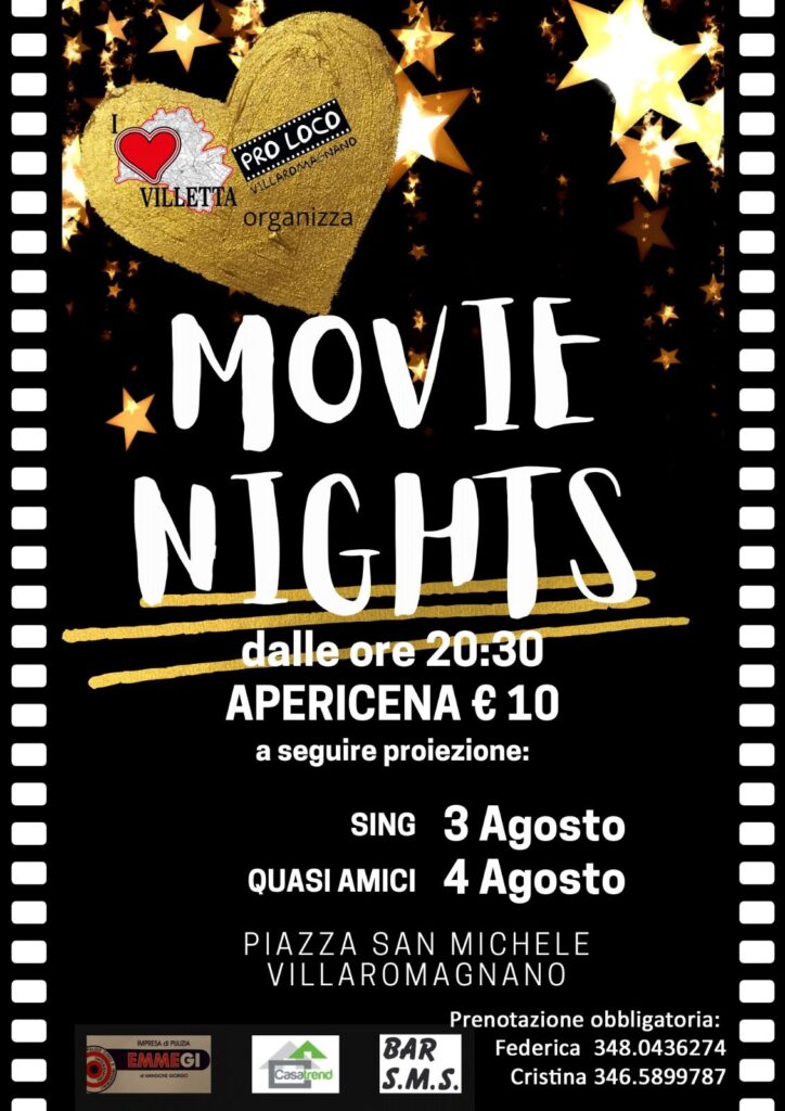 Sabato 3 e Domenica 4 Agosto la Pro Loco di Villaromagnano organizza “Movie Nights” in piazza San Michele. Dalle 20.30 apericena (al costo di 10 euro) e, a seguire, la proiezione di due film all’aperto: Sabato “Sing” (cartone animato per bambini) e Domenica “Quasi Amici” (film per tutti).
