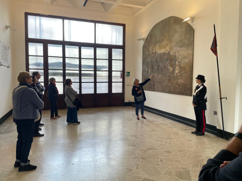 Diversi visitatori alcuni dei quali provenienti dal Livorno Ferraris in provincia di Vercelli hanno partecipato alla prima delle due “Giornate d’autunno del Fai” il Fondo Ambiente Italiano che grazie alla collaborazione del nuovo comandante il maggiore Gianluca Bellotti, hanno potuto vedere l’affresco del pittore Giovanni Cavanna esposto all’interno della vecchia caserma in via Padre Michele da Carbonara, staccato dall’immobile in cui è rimasto per 60 anni e restaurato. L’opera è stata illustrata sapientemente da Bruna Guidobono che poi ha lasciato la parola ad Enrico Magnano.