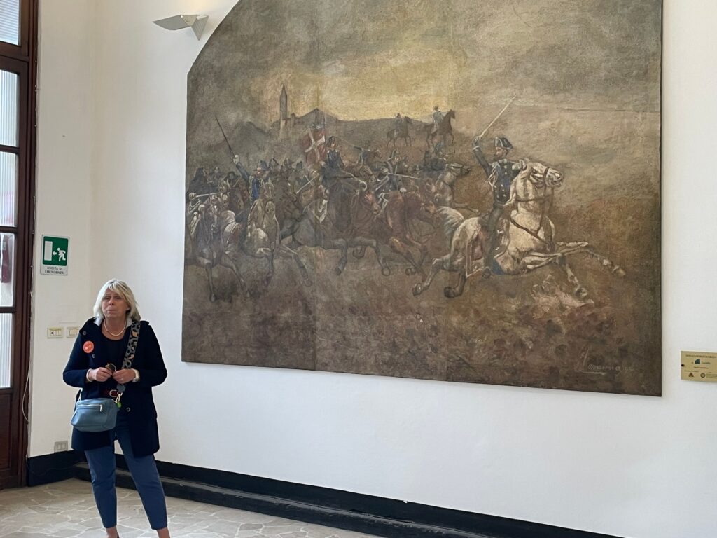 Nel primo luogo, ovvero nell’atrio della Caserma dei Carabinieri Compagnia di Tortona (in passato sede delle Officine Orsi e durante gli anni della Seconda Guerra Mondiale, dell’Aeronautica), a cui si riferiscono queste immagini l’opera di maggior pregio è stata appunto il dipinto “Battaglia di Pastrengo: carica dei Carabinieri a cavallo” e due targhe degli eroi a cui è intitolata la struttura, Giosuè Sammartin ed Ernesto Cabruna. L’opera che riprende con alcune varianti la “gemella” di Sebastiano De Albertis, custodita nel Museo Storico dell’Arma dei Carabinieri a Roma, è stata realizzata e donata nel 1950-1951 dal pittore Giovanni Cavanna ai carabinieri tortonesi ed esposta sullo scalone dell’ex caserma, ospitata fino al 1967 all’interno di Palazzo Leardi. Dopo circa 60 anni, al termine di un importante intervento di restauro, l’affresco è stato staccato e collocato nell’androne dell’attuale caserma. Un’immersione ai tempi della Prima Guerra d’Indipendenza contro l’Austria, realizzato da un artista appartenente alla “Scuola tortonese” che vanta nomi come Patri, Saccaggi e Barabino. Nelle targhe, si ricorda invece chi nel 1943 si sacrificò per difendere la caserma dall’attacco dei tedeschi e l’altra per celebrare il centenario della prima medaglia al valore. Le aperture saranno di sabato 12 e domenica 13 saranno pomeridiane dalle 15 alle 17,30 con ultimo ingresso mezz’ora prima della chiusura.