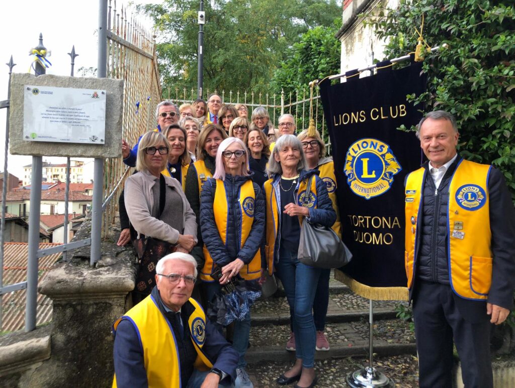 Sull’altro colle sovrastato dalla Torre del Parco del Castello, polmone verde della nostra Città, il Club Tortona Duomo ha realizzato un intervento di restauro e abbellimento dell’area dominata da un imponente secolare cedro del libano sostituendo le 4 cadenti panchine con le nuove nei colori giallo e blu. L’area, già dedicata dai Club di Zona ad Helen Keller con una targa sulla sua figura e valore scritta anche in Braille e inaugurata nel 2022 dal PIP Dr. Yamada, è stata completata con il nuovo service, un gesto concreto per i tanti cittadini che potranno ritrovarsi e sostare. Quattro piccole targhe riportano i simboli delle 8 aree di intervento Lions: vista, diabete, fame, ambiente, cancro infantile, giovani, cause umanitarie, assistenza nei disastri, loghi importanti che richiamano valori e aiuti concreti dei Lions alla comunità di appartenenza e lontane.