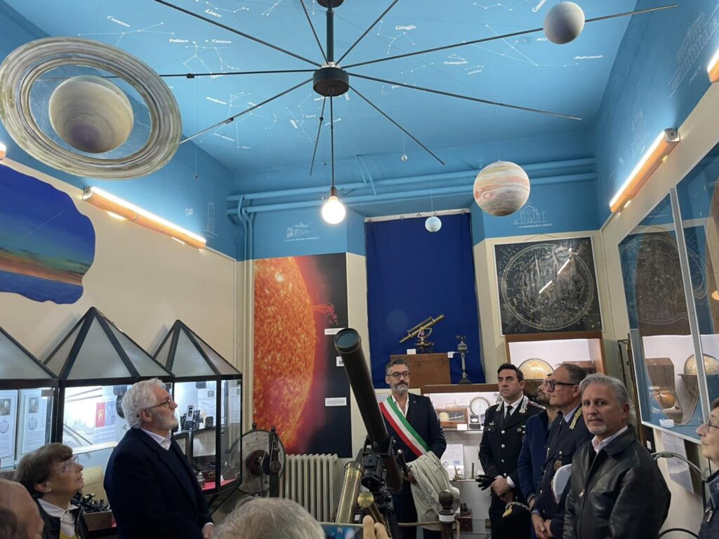 Sono state inaugurate oggi, sabato 26 ottobre le due nuove sale presso il Museo del Mare in via Pernigotti a Tortona, fra cui quella con il sistema solare. L’evento è stato preceduto da una conferenza in Biblioteca sulla figura dell’ammiraglio Carlo Mirabello tenuta dal dottor Massimo Alfano: al termine si è tenuta la cerimonia per la consegna della sciabola appartenuta all’ammiraglio Tortonese che il Comune ha donato al Museo dove resterà esposta. (foto in basso)
