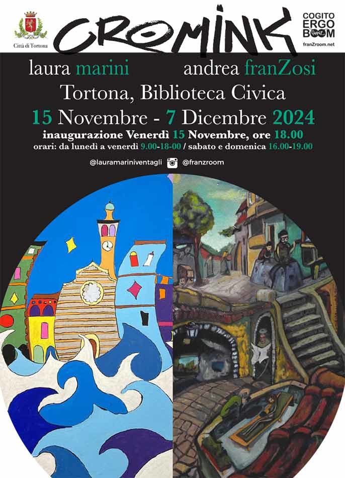 Venerdì 15 novembre alle ore 18, presso la Biblioteca Civica di Tortona, sarà inaugurata la mostra “Cromink” con le opere di Laura Marini e Andrea Franzosi. L’esposizione sarà visitabile fino al 7 dicembre, dal lunedì al venerdì con orario 9-18, sabato e domenica dalle 16 alle 19.