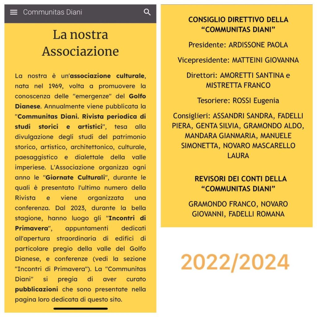 L’associazione culturale Communitas Diani ha reso noto che continuerà il proprio impegno a testimonianza dell’arte della storia del Golfo Dianese al fine di mantenere vivo l’interesse storico del territorio nei confronti non solo degli adulti ma anche dei giovani, affinché gli stessi siano consci della preziosità del patrimonio artistico della zona.