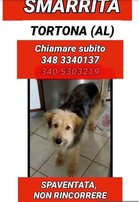 Sabato 18 gennaio intorno alle 12.00 è scappata Mirtilla, cane arrivato dal sud in adozione ad una famiglia abitante in Corso Silvio Pilotti.