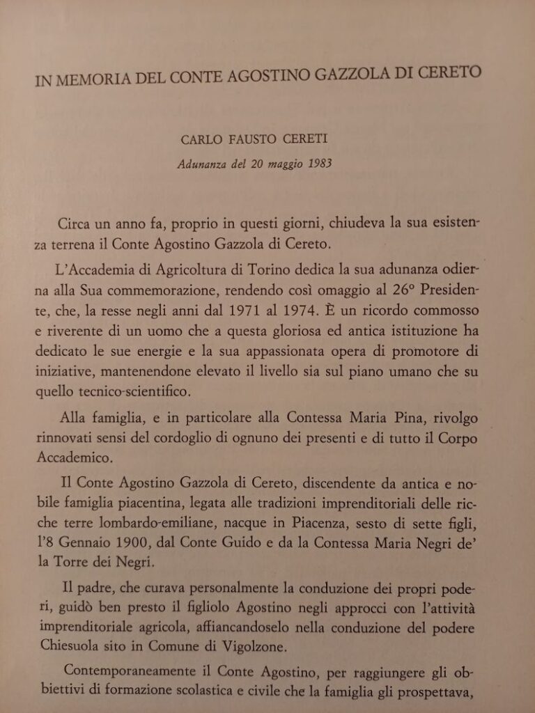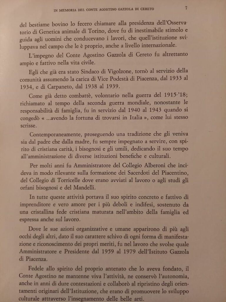 Pubblichiamo di seguito un opuscolo che narra la storia dell’imprenditore Agostino Gazzola proprietario del castello di Cerreto Landi in provincia di Piacenza.