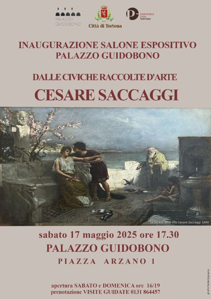 Per l’occasione verrà presentata una selezione di opere del pittore tortonese Cesare Saccaggi (1868-1934) dalle civiche collezioni artistiche, con l’ intento di esporre opere di un artista dall’attività eclettica che oggi più che mai esce dai confini di una visione provinciale, riportando all’attenzione del grande pubblico, dei conoscitori esperti e degli studiosi, una esperienza significativa dell’arte europea tra verismo pittorico e simbolismo internazionale, in ragione anche della nuova acquisizione da parte dei Musei Reali di Torino della tela del maestro tortonese “A Babilonia (Semiramide)”, realizzata intorno al 1905, che ha riscontrato un grande afflusso di visitatori. L’opera documenta il legame che Saccaggi seppe consolidare con la sua regione, anche grazie alla fortuna e all’apprezzamento presso la committenza borghese a Casa Savoia.