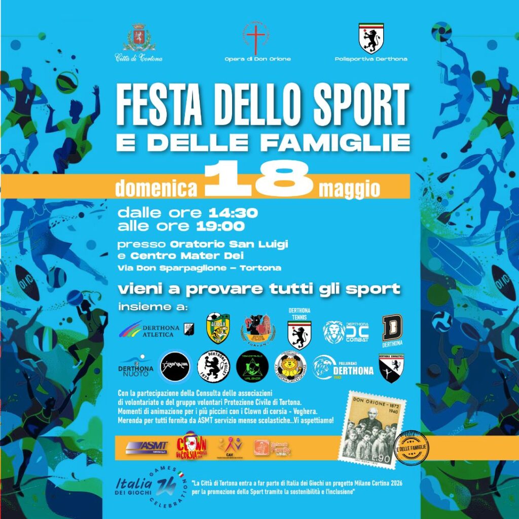 La Festa dello Sport e delle Famiglie è un’iniziativa proposta dall’Opera di Don Orione, organizzata in stretta collaborazione con il Comune di Tortona e la Polisportiva Derthona e si svolgerà nell’area dell’oratorio del Santuario con accesso in macchina al parcheggio di via Don Sparpaglione dalla rotonda sulla strada per Genova, angolo viale F.lli Kennedy. La manifestazione è entrata a far parte del circuito Italia dei Giochi – Milano Cortina 2026 per la promozione dello sport tramite l’inclusione e la sostenibilità.