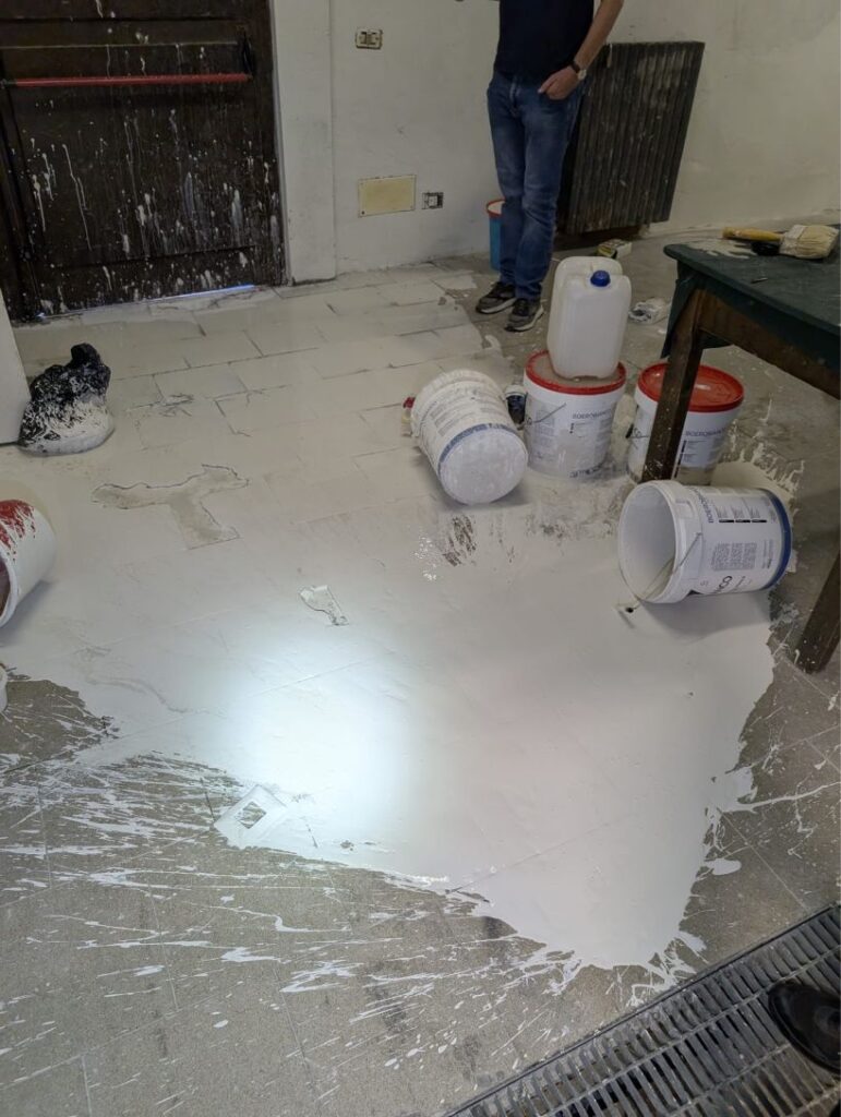 Scendono nella Sala Giovani dove trovano delle latte di vernice che servivano per piccoli lavori di manutenzione le aprono e imbrattano un po’ dappertutto lasciando un messaggio “Amo Carla Puddu” da capire se si tratta veramente di un messaggio d’amore oppure una specie di firma.
