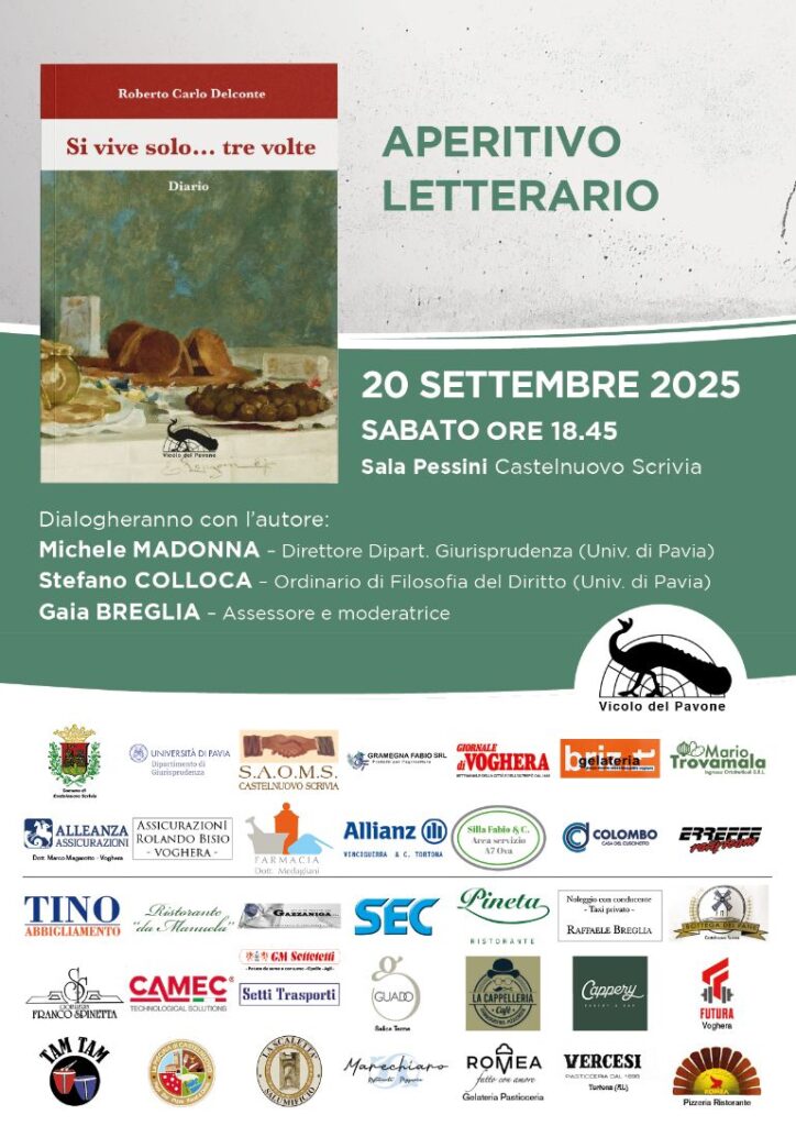 Sabato 20 settembre si svolgerà a Castelnuovo Scrivia, alle ore 18.45 presso la Sala Pessini, la prima presentazione dell’opera, a cura di due autorevoli docenti dell’Università di Pavia (con la quale peraltro l’autore collabora da circa otto anni, tenendo lezioni di approfondimento con le cattedre di “diritto canonico”, “diritto ecclesiastico” ed “etica della comunicazione”). Dialogheranno con Delconte il Direttore del “Dipartimento di Giurisprudenza” (riconosciuto Dipartimento di eccellenza 2023-2027) prof. Michele Madonna, ed il prof. Stefano Colloca, ordinario di “Filosofia del Diritto”, nonché Rettore del Collegio pavese “Giasone del Maino” e membro dell’Istituto Lombardo “Accademia di Scienze e Lettere”. Sarà moderatrice della serata l’Assessore castelnovese Gaia Breglia. Al termine della presentazione è previsto un “brindisi con l’autore” ed il consueto “firma copie” per i presenti.