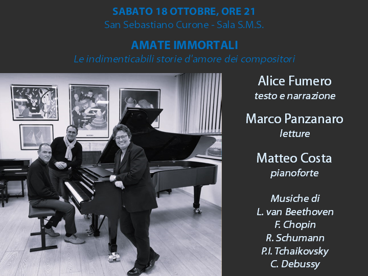 Una serata in cui la musica non sarà solo protagonista, ma anche chiave di lettura delle più intime vicende umane: amori travolgenti, relazioni spezzate, ispirazioni sublimi. Il pianista Matteo Costa, interprete raffinato e profondo, attraverserà l’universo sentimentale di cinque giganti del repertorio romantico ed impressionista – Beethoven, Chopin, Schumann, Tchaikovsky e Debussy – restituendone non solo la grandezza compositiva, ma anche l’irrequietezza affettiva e l’inquietudine interiore.