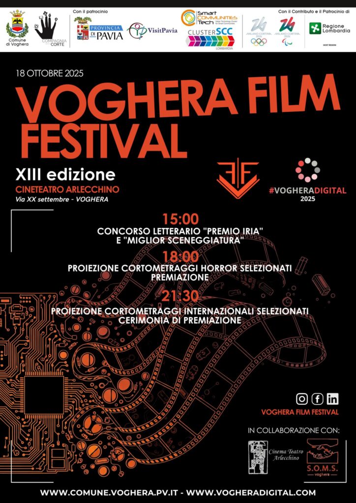 Per la sua 13ª edizione il Voghera Film Festival torna allo storico Cinema Arlecchino (via XX Settembre, 92) per una giornata di proiezioni e incontri con gli autori, un evento dedicato a cinema e cultura nel cuore della città organizzato dal Comune di Voghera con il progetto Voghera Digital e, in collaborazione con la S.O.M.S. di Voghera.