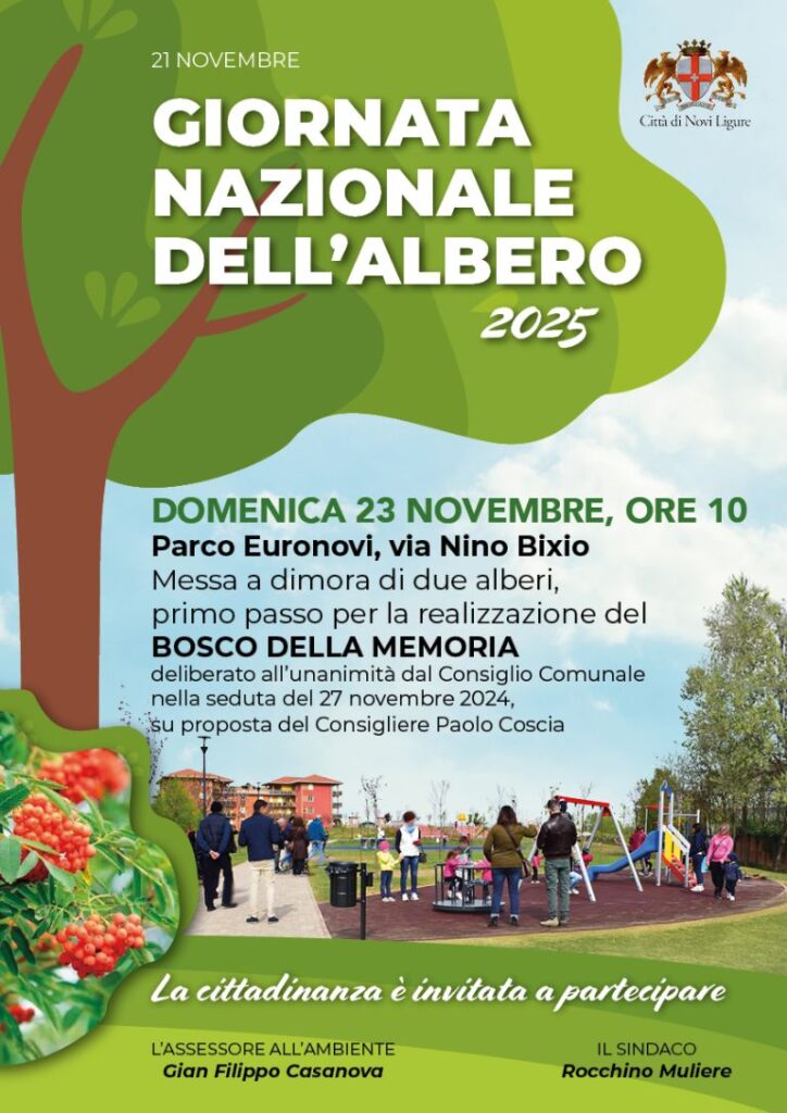 Per l’occasione, il Comune di Novi Ligure ha organizzato una cerimonia che si terrà domenica 23 novembre alle ore 10 presso il Parco Euronovi in via Nino Bixio.