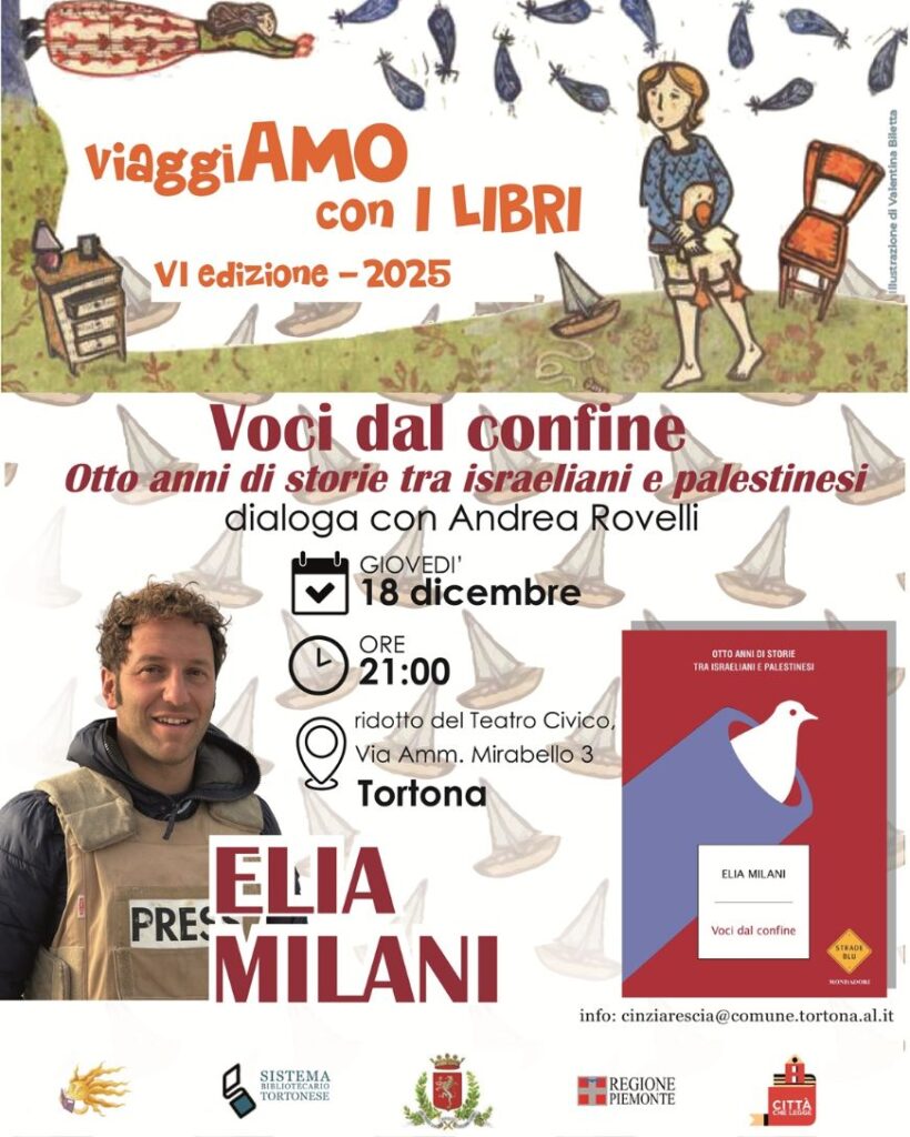 Giovedì 18 dicembre alle ore 21, presso la sala del Ridotto del Teatro Civico di Tortona, si terrà la presentazione del libro “Voci dal confine. Otto anni di storie tra Israeliani e Palestinesi” alla presenza del’autore Elia Milani, giornalista e corrispondente da Gerusalemme.