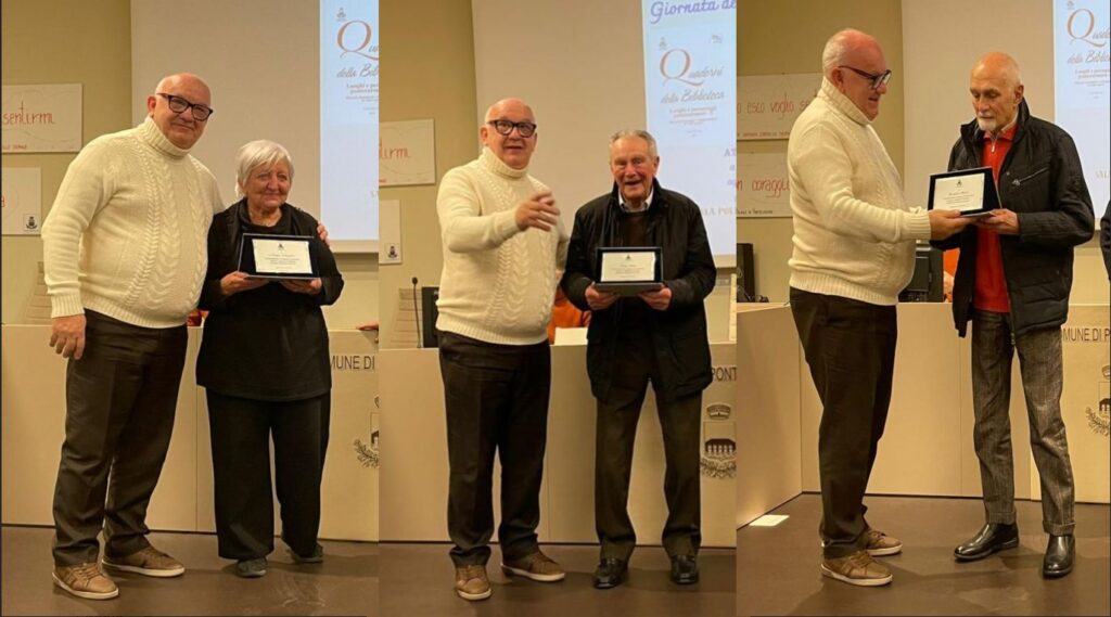 Nella tradizionale Giornata della Riconoscenza, sabato 13 dicembre sono stati premiati in Sala “G. Berri” storici commercianti e artigiani, stimati agricoltori e appassionati lettori. Il Sindaco Valentino D’Amico, l’Assessore alla cultura e all’agricoltura Marialuisa Ricotti e il Presidente della Commissione della Biblioteca “S.Castelli” Piero Gazzaniga hanno consegnato le targhe di benemerenza per l’attività svolta per tanti anni con dedizione alle Sigg. Maria Bellini, titolare del negozio di Lavasecco “La Moderna”e a Norma Angelini, storica parrucchiera, al fabbro Elio Sturla, a Paolo Carniglia, titolare del bar “Il caffè della piazza” e agli stimati agricoltori Angelo Castellini, Antonio Colla, Ugo Mogni e Gigi Stella, tutti esempi encomiabili di grande attaccamento al lavoro. Grande è stata l’emozione sia da parte dei premiati, sia da parte del pubblico in sala.