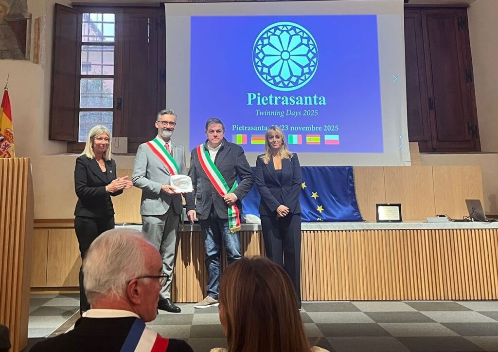 Il 21 e 22 novembre scorsi il Sindaco Federico Chiodi e l’Assessore al Turismo Fabio Morreale hanno partecipato ai Twinning Days a Pietrasanta, in Toscana: le due municipalità si erano “incontrate” durante un precedente soggiorno, qualche mese fa, a Zdunska Wola, in Polonia, città che da tempo ha stretto patti di amicizia con entrambi i Comuni italiani. I Twinning Days sono stati l’occasione per intrecciare nuovi legami con il Comune ospite e con le altre città gemellate invitate, offrendo anche l’opportunità di aderire a progettualità di scambio culturale, ma non solo, nell’ambito della cooperazione europea. Erano presenti, oltre ai padroni di casa, Tortona e Zdunska Wola, anche i Comuni di Lerici (SP), di Eucassines (Belgio), Grenzach-Wyhlen (Germania), Palafrugell (Catalonia-Spagna), Villeparisis e Mougins (Francia). Fra i progetti discussi “Sound Bridges” l’idea cioè di un evento con musicisti provenienti dalle diverse municipalità interessate che permetta uno scambio di idee, culture, tradizioni attraverso il linguaggio universale della musica.