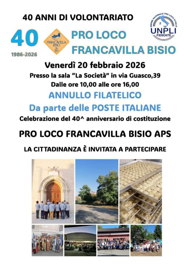 L’Associazione Proloco di Francavilla Bisio nel mese di Febbraio (esattamente venerdì 20 ) compirà 40 anni! La sfida di costruire una entità capace di “promuovere” iniziative tese a far conoscere il piccolo paese collinare della Val Lemme – lanciata da un manipolo di amici a ridosso di un cambio amministrativo comunale – non ci può lasciare indifferenti, anzi ci conduce sapientemente a “fare memoria” della storia di un Gruppo ma anche di una intera Comunità, che con impegno, passione, entusiasmo, ha favorito una svolta, un cambiamento, una notorietà mai conosciuti prima.