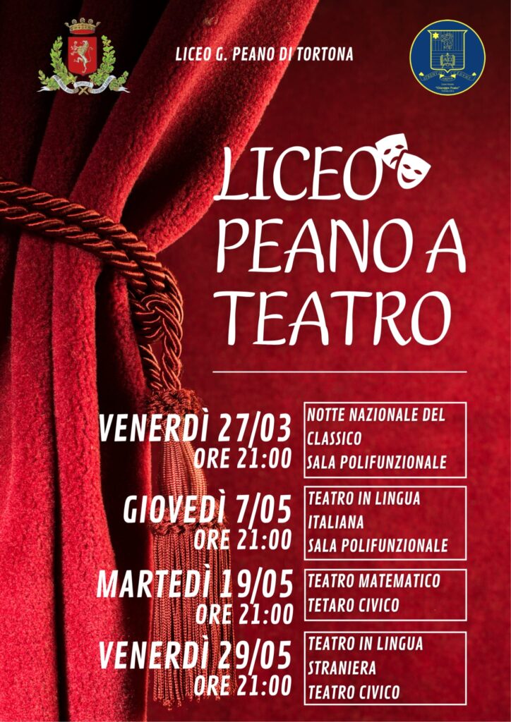 Anche quest’anno il Liceo G. Peano di Tortona partecipa alla XII edizione della Notte Nazionale del Liceo Classico.L’evento, nato da un’idea del prof. Rocco Schembra, docente di Latino e Greco presso il Liceo Classico “Gulli e Pennisi” di Acireale (CT) e ora Ricercatore di Filologia classica presso l’Università di Torino, sostenuto dal Ministero della Pubblica Istruzione e dall’Associazione Italiana di Cultura Classica, coordinato da un ampio e rappresentativo Comitato Organizzativo, quest’anno si celebrerà venerdì 27marzo 2026 dalle ore 18:00 alle ore 24:00 in quasi 350 licei classici. Il liceo Peano di Tortona celebrerà la Notte Nazionale con la rappresentazione del “Satyricon” di Petronio alle 21, presso la sala Polifunzionale della Caserma Passalacqua di Tortona.