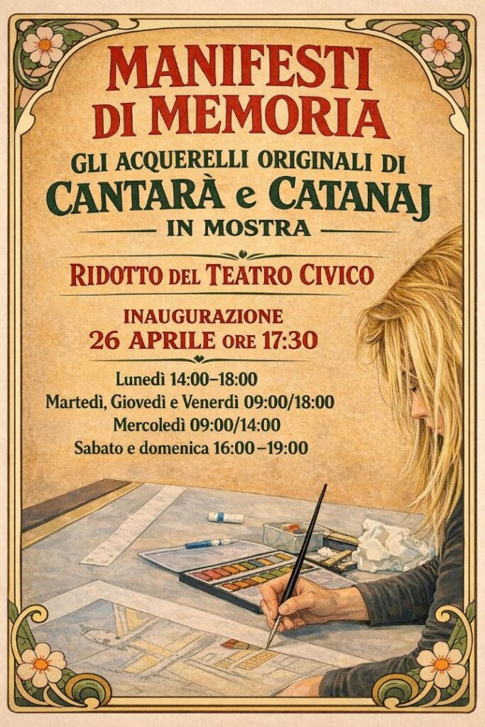 Il Comune di Tortona la mostra “Manifesti di Memoria”, un’esposizione dedicata agli acquerelli originali delle locandine che in questi anni hanno accompagnato le diverse edizioni della fiera di anticaglie Cantarà e Catanaj, che rappresentano un viaggio tra arte, identità e memoria visiva del territorio. L’evento inaugurale si terrà sabato 26 aprile alle ore 17:30 presso il Ridotto del Teatro Civico: la mostra propone una selezione di opere realizzate con la tecnica dell’acquerello, capaci di restituire profondità scorci, atmosfere e suggestioni legate alla memoria collettiva. L’esposizione sarà visitabile il lunedì dalle ore 14 alle 18; il martedì, giovedì e venerdì dalle ore 9 alle 18; il mercoledì dalle 9 alle 14; mentre il sabato e la domenica dalle 16 alle 19.