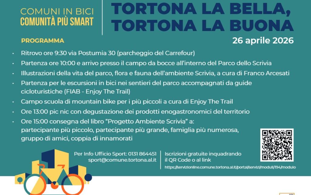 Domenica 26 aprile, è in programma il terzo evento del progetto Derthona in Bici, finanziato da Sport e Salute S.p.A nell’ambito del bando “Bici in Comune” promosso dal Ministero per lo Sport e i Giovani.