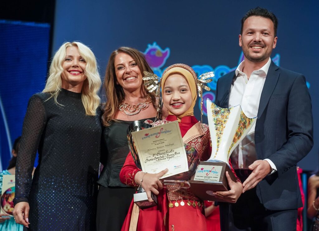 L’altro ambìto premio, il Prix Committee Sanremo Junior, è andato alla tredicenne concorrente proveniente dall’Indonesia, Almira Ainun Mahya, con il brano Mama knows best, che lo ha ricevuto del Vice Presidente di Sanremo Junior Dennis Alberti.